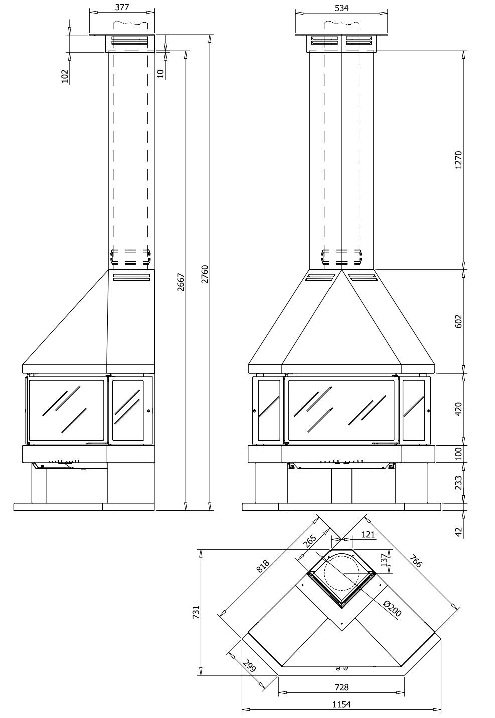 Диаметр дымохода:
