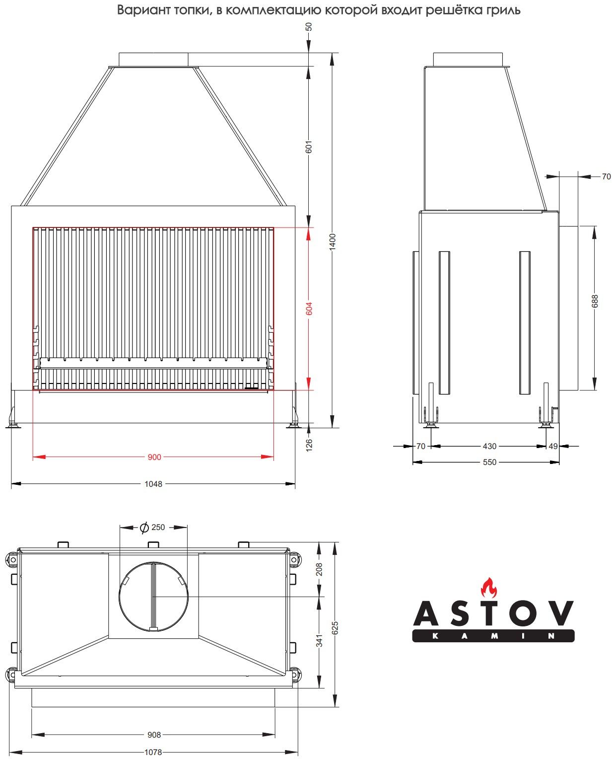 Каминная топка Astov ОПС 900