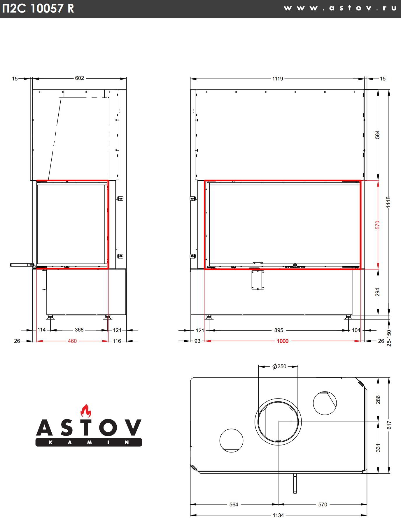 Каминная топка Astov П2С 10057 R