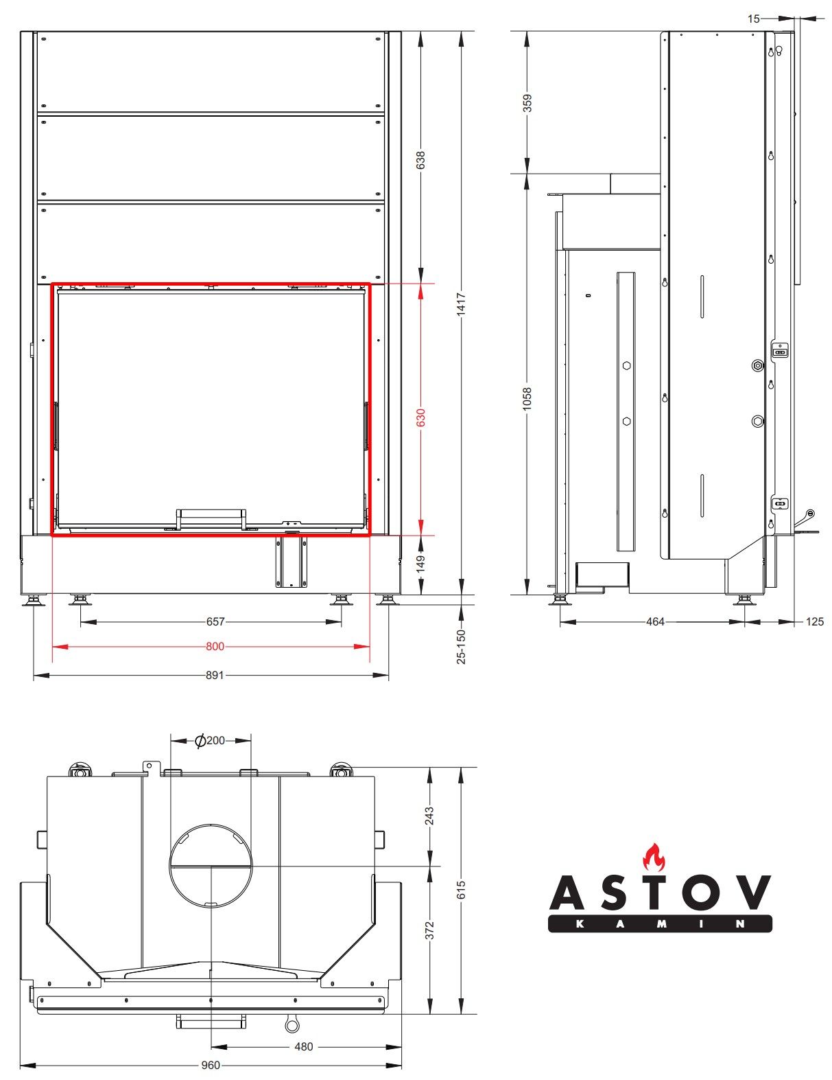 Каминная топка Astov ПС 8063 У