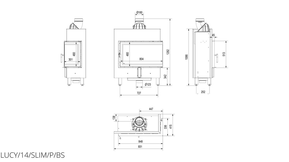 Каминная топка Kratki Lucy 14 R/BS Slim