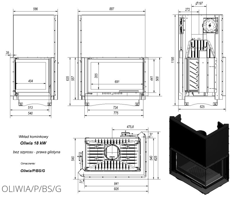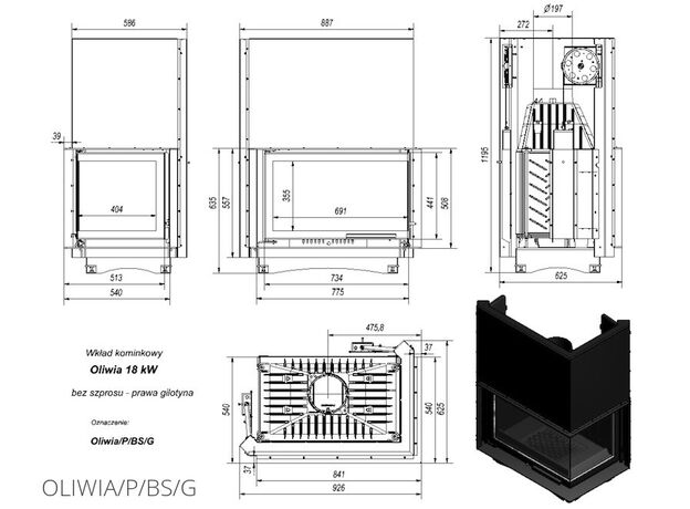 Каминная топка Kratki Oliwia 18 R/BS/G