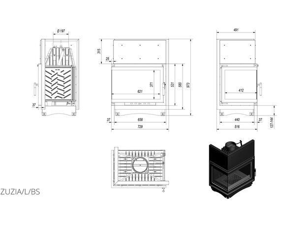 Каминная топка Kratki Zuzia 16 L/BS