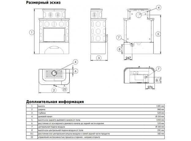 Диаметр дымохода: