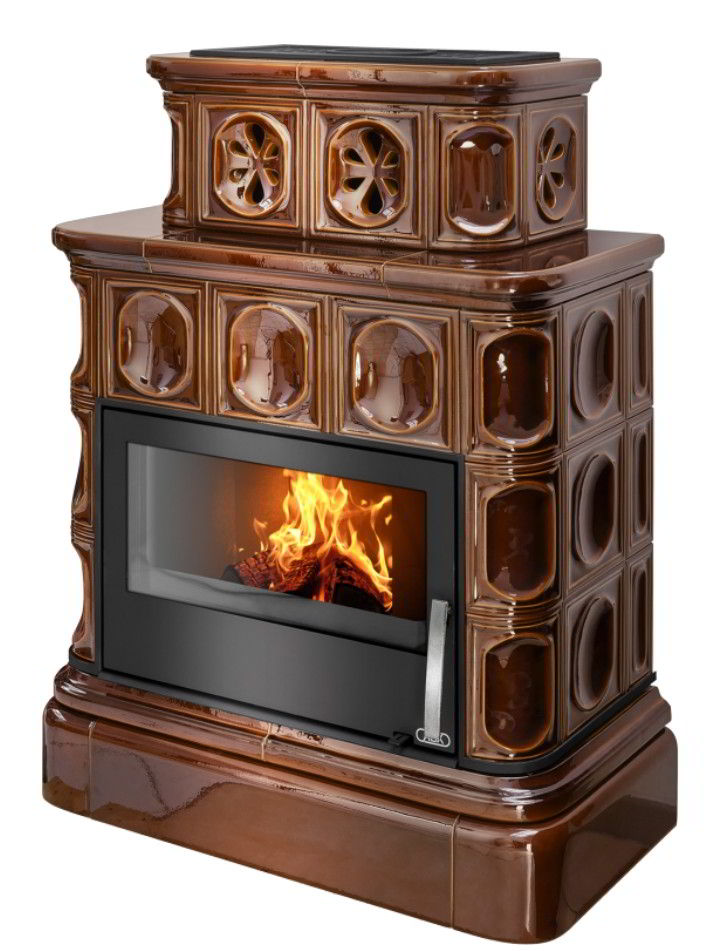 Печь-камин ABX Karelie P коричневая с кафельным цоколем