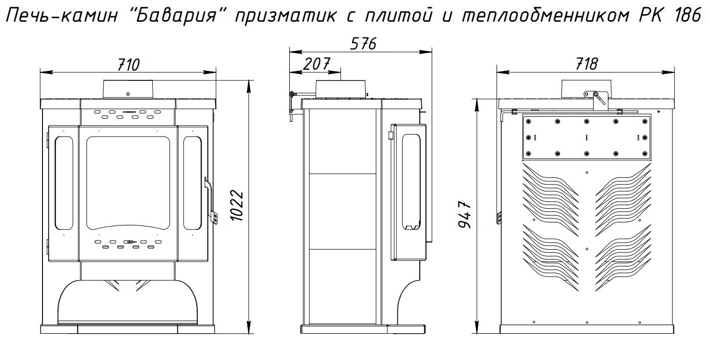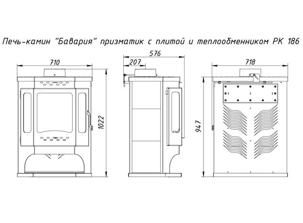 Печь-камин EcoKamin Бавария Призматик с плитой