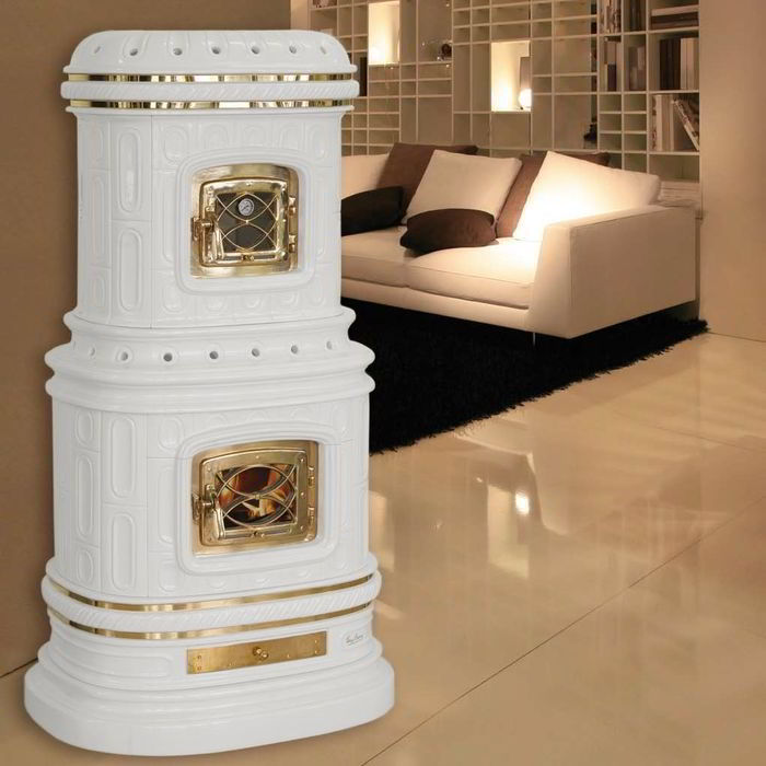 Печь-камин Sergio Leoni Viennese Accumulo M1 Craquele White Matt