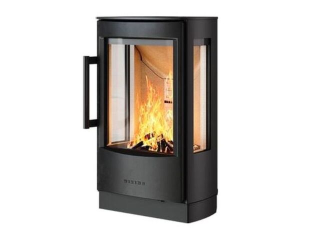 Качественная скандинавская печь с большим стеклом и умеренной мощностью.