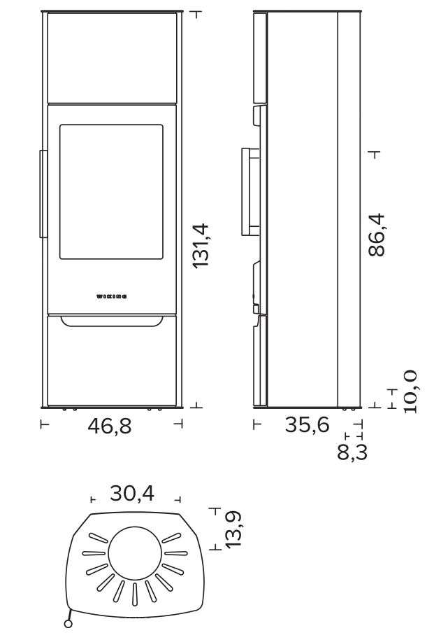 Габариты. Печь не занимает много места, не требует большого пространства для установки. При этом Wiking Miro имеет огромное остекление. Для установки печи не нужен фундамент. Её можно устанавливать на любой тип полового покрытия. В том числе на деревянные полы или на ламинат. Нижняя часть Викинг Миро не нагревается СОВСЕМ. Для защиты от возможного попадания случайных угольков на пол мы укладываем перед печью небольшой стальной или стеклянный притопочный лист.